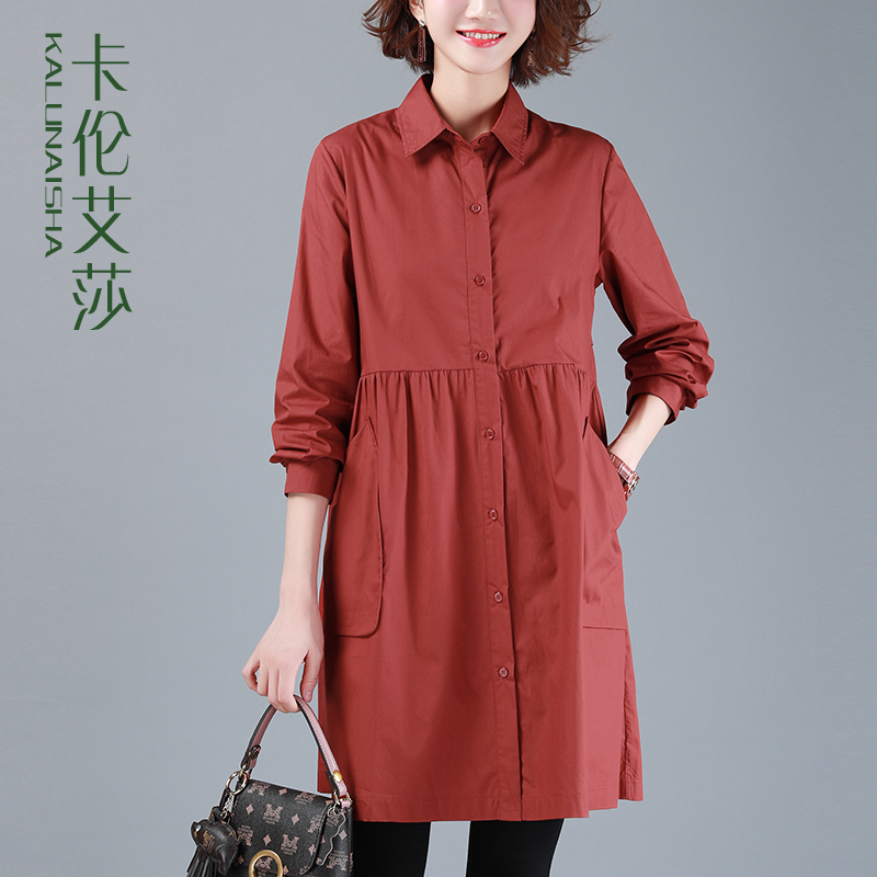 Long sleeve shirt female spring autumn 2022 new wave easing medium long version Korean version pure cotton shirt design with small crowdblouse