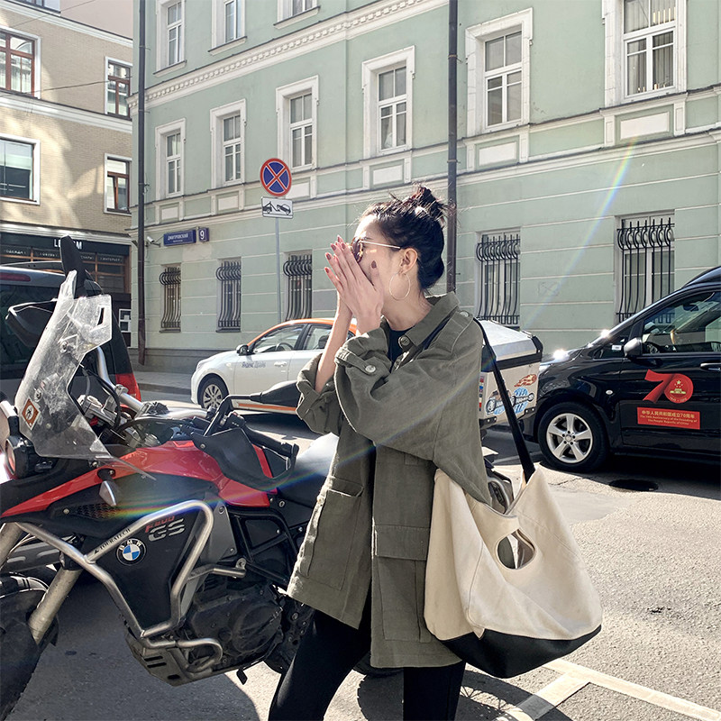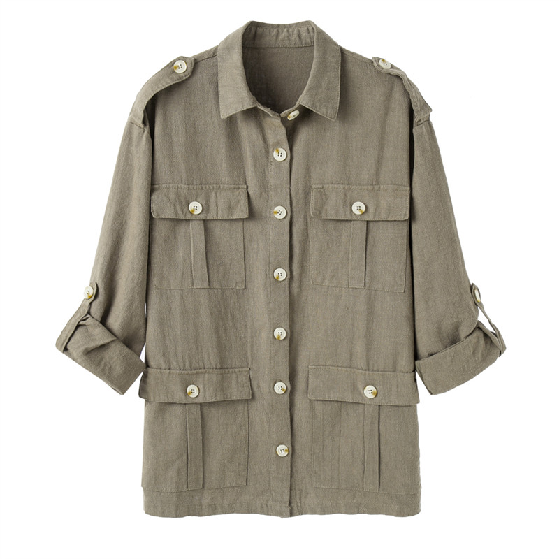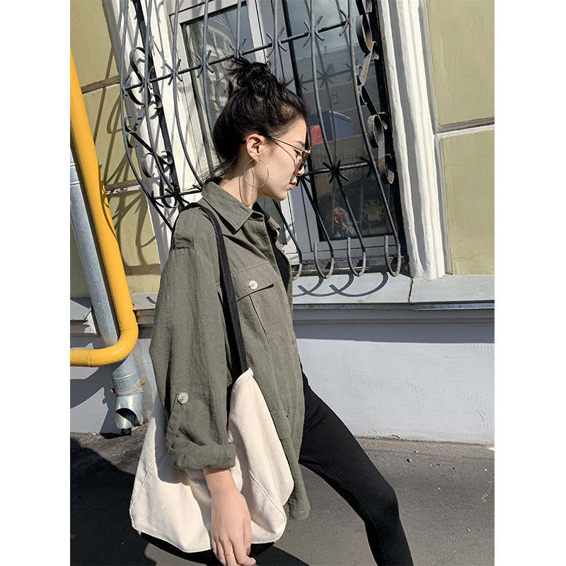 Tooling hemp coat women's early autumn loose all-match casual slimming retro Hong Kong style bf style student multi-pocket top