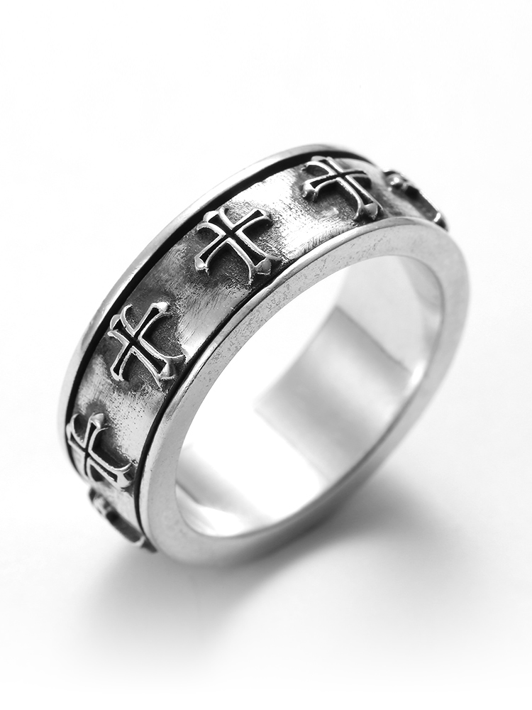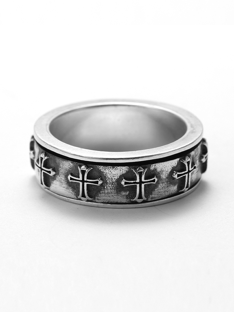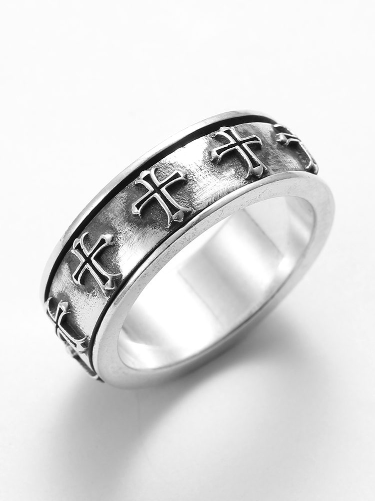 ruibeila925 Silver fashion vintage cross personality ring for men Thai silver made old ring rotatable tide