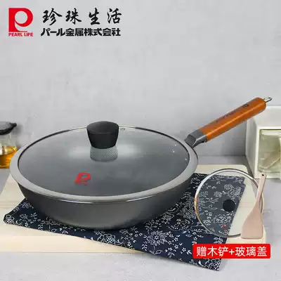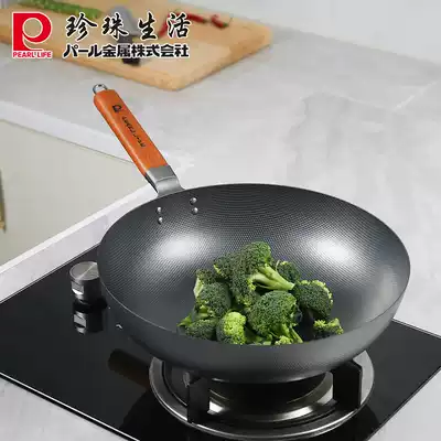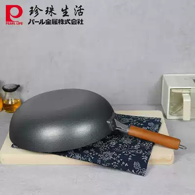 Pearl Life Japan imported household light non-coated not easy to stick wok wok wok iron pan stainless flat bottom wok