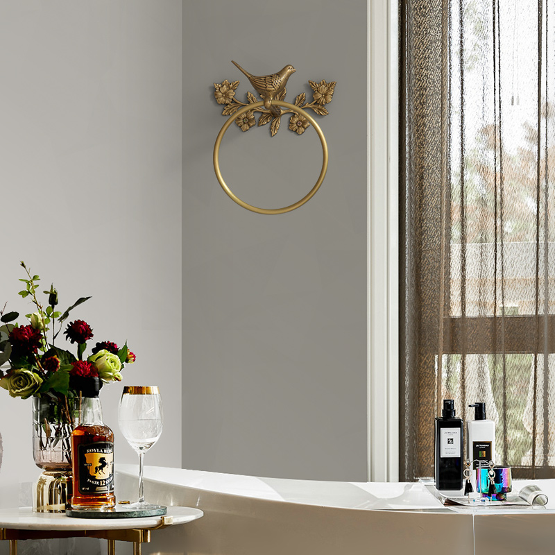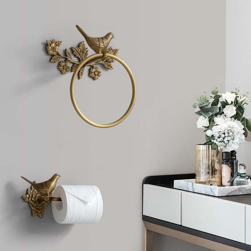 Harvest Cabin Retro Brass Bird Towel Ring Bathroom Bathroom Free Punch Towel Holder Paper Towel Storage Wall Hanging