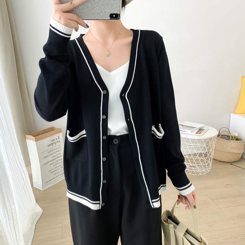Big size women's clothing fall new outings for new outings of small scents weasel-knit cardiovert cardiovert girl with loose sweater and thin blouses