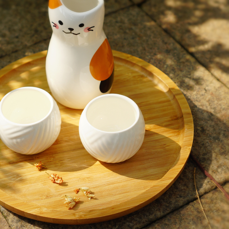 Li Tai's home Japanese bamboo wooden tray round household tea tray tea cup tray bread fruit breakfast plate