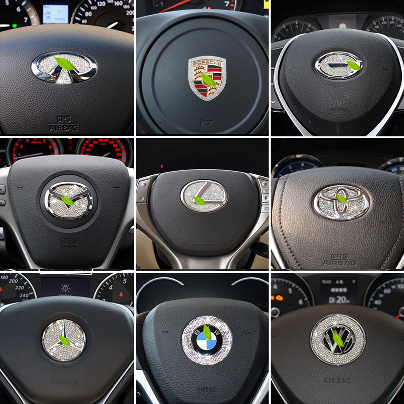 Car logo diamond sticker BMW Benz Audi Foss Ling Chi Chuanqi Modern steering wheel inlaid diamond decoration sticker