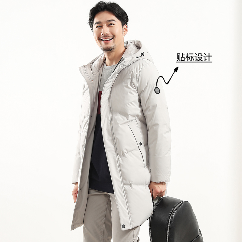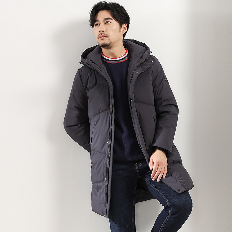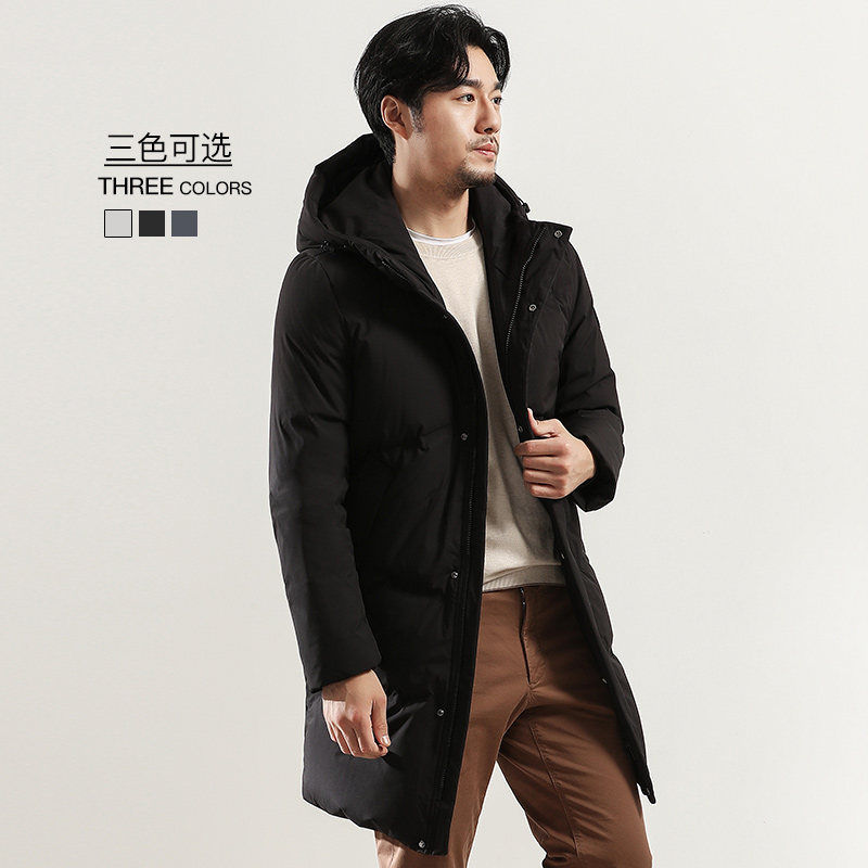 Qianren Gang new down jacket men's medium and long version hooded thick casual men's solid color down 239673