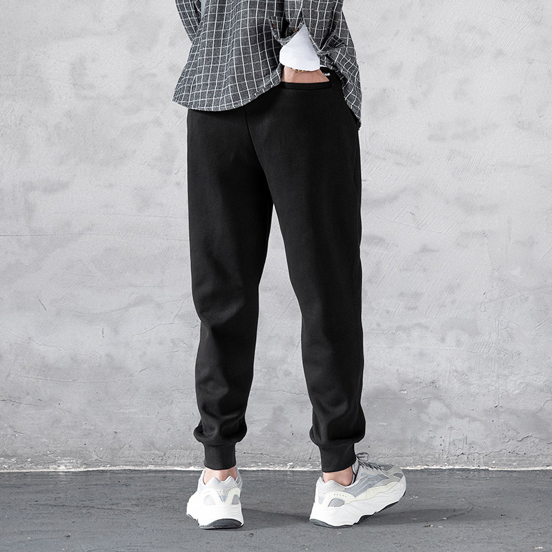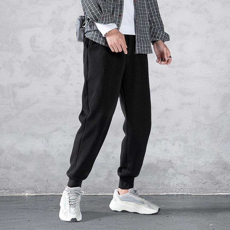Wei pants male popular logo loose pants 2020 new autumn and winter add plush add thick joker knitted leisure sports bundle foot pants