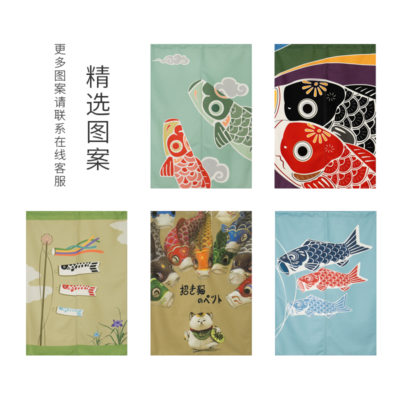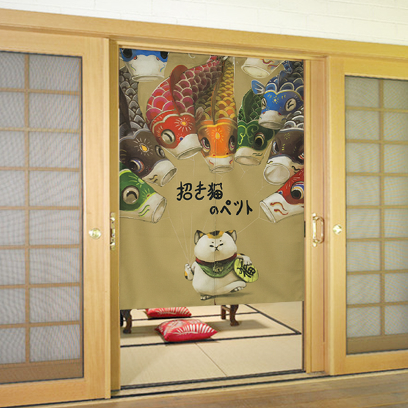 Japanese koi curtain partition household cotton linen curtain mirror shield overall cabinet dustproof toilet curtain free of punching holes