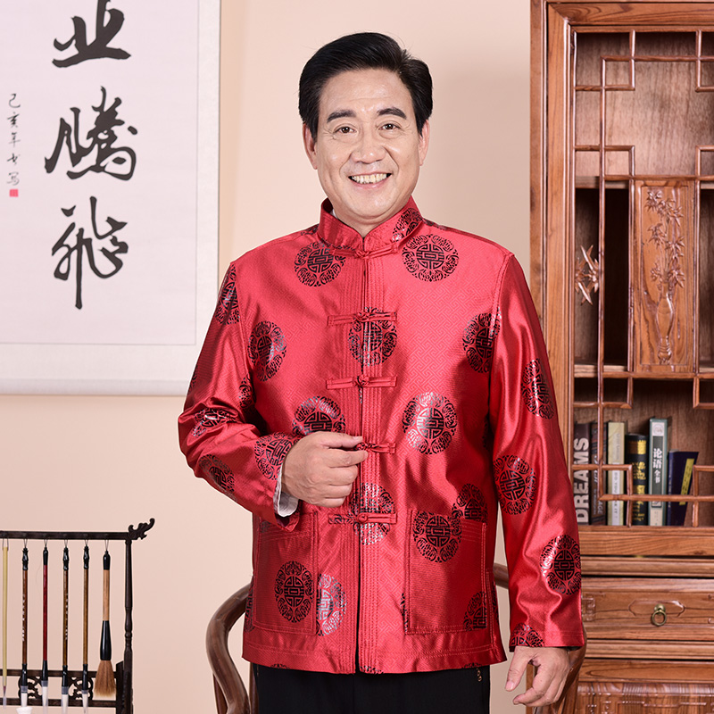Dad Spring Autumn Tang Dress Men's Long Sleeve Jacket for the Elderly 80 Great Birthday Clothes Chinese Wind Grandpa Suit
