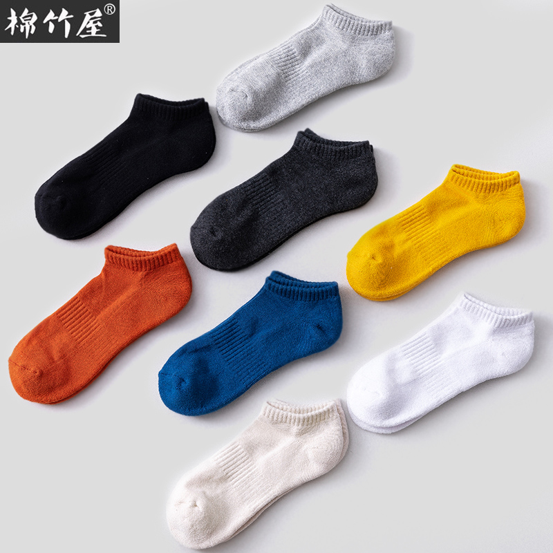 7 pairs of socks men's short socks tide low-top sports spring and summer cotton socks sweat-absorbing thickened terry towel socks black boat socks men