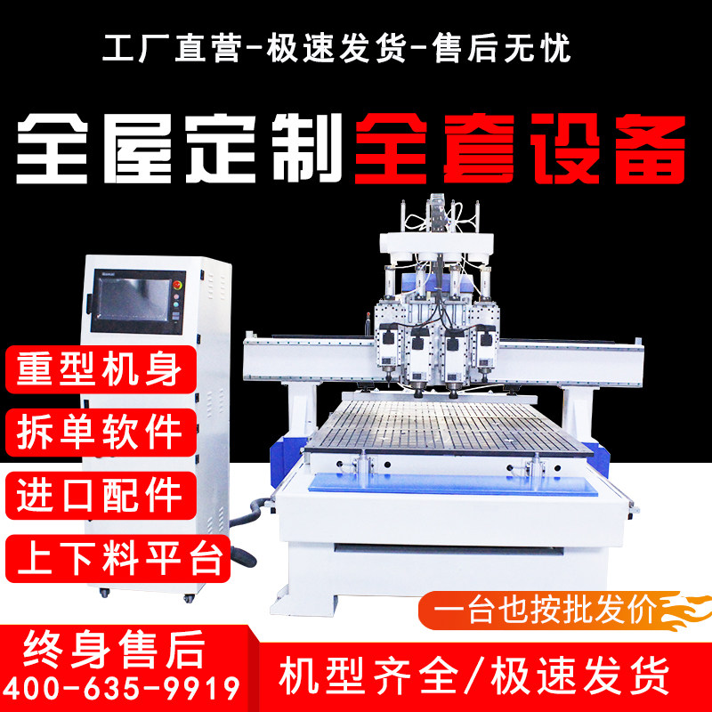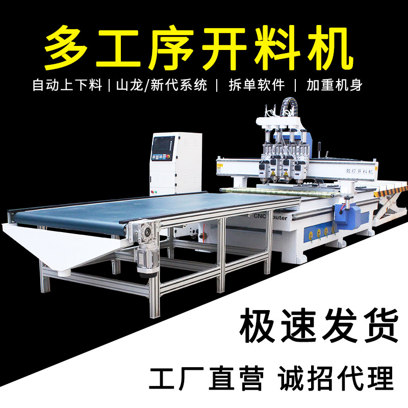 Numerical control woodworking opening machine large fully automatic upper and lower material three-four process plate furniture plate door opening machine