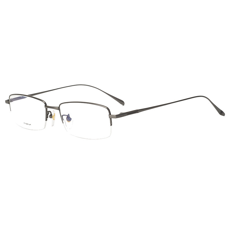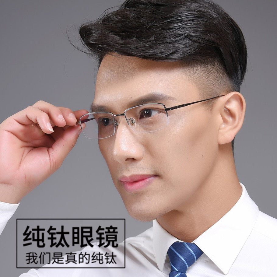 Business pure titanium half-frame glasses frame myopia glasses frame men's ultra-light comfortable elastic with degrees with finished anti-blue light