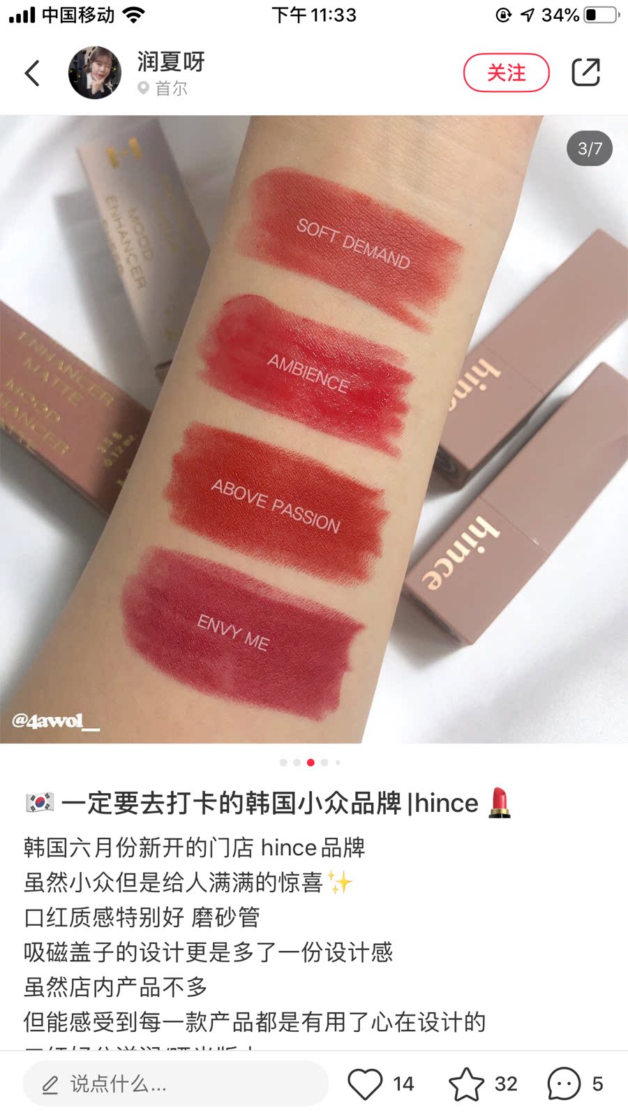 Mention Hide Temperament Korea Hince Texture Velvet Mist Noodle Lipstick Red Lipstick Jealous I Allure Soft
