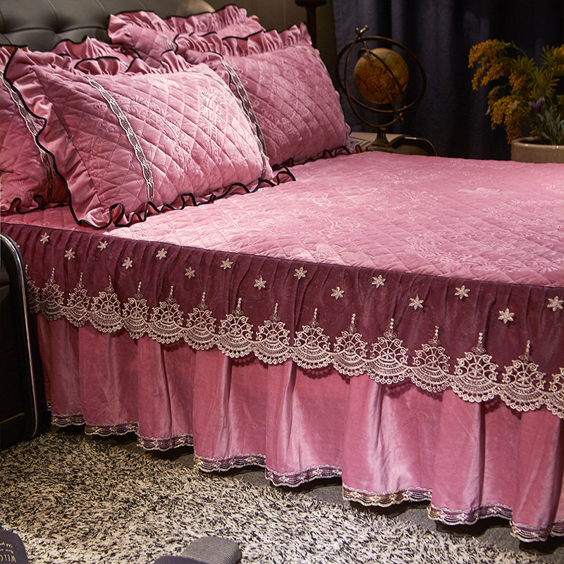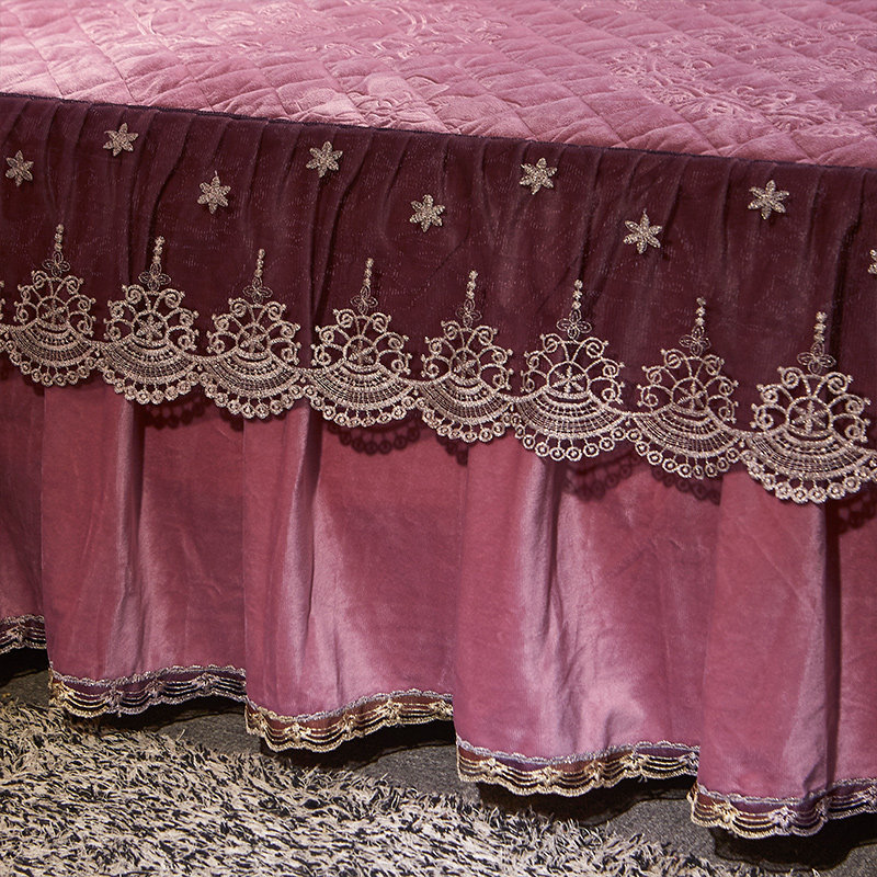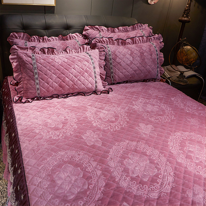 European-style embossed bed end thickened crystal velvet quilted double-sided bed skirt double-layer lace bed sheet bed cover cover