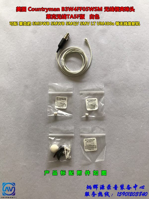 Countryman B3W4FF05WSM wireless lavalier head with SMDWB SMQV UM400a white