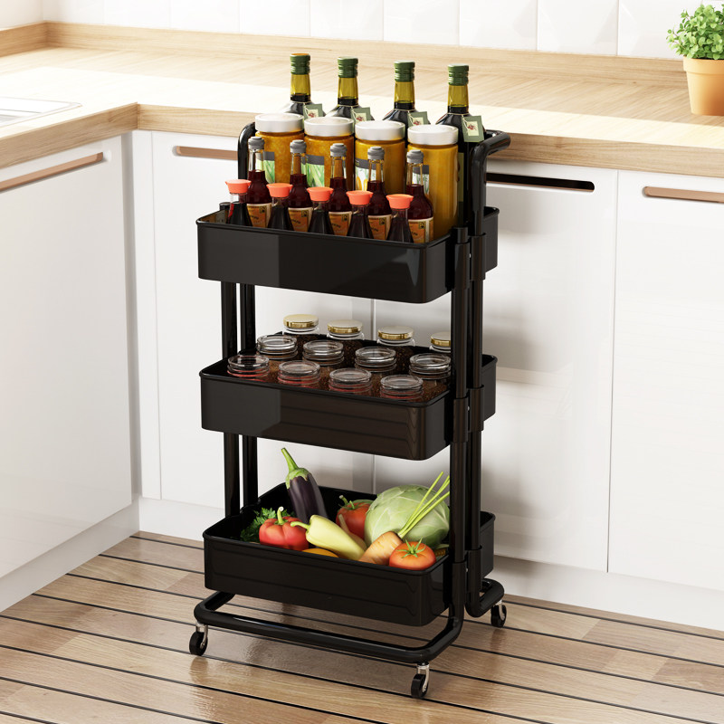 Model B 3-layer handle Elegant black carbon steel bracket Plastic mesh basket