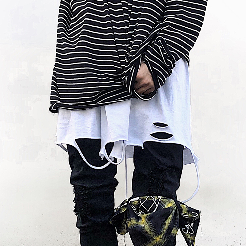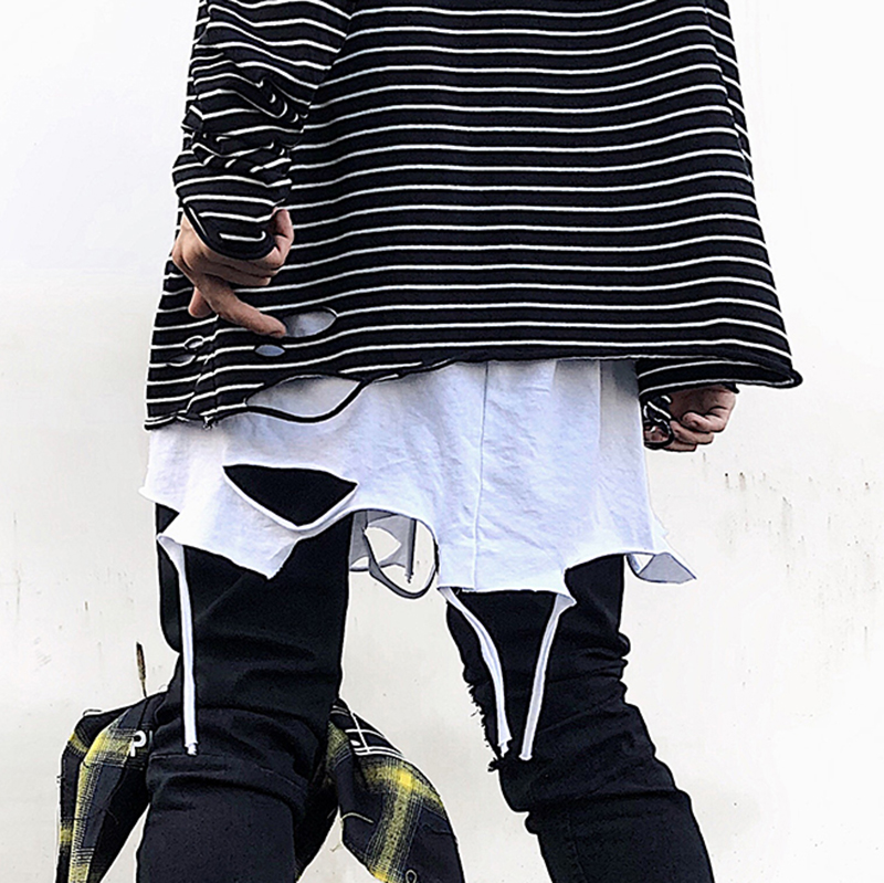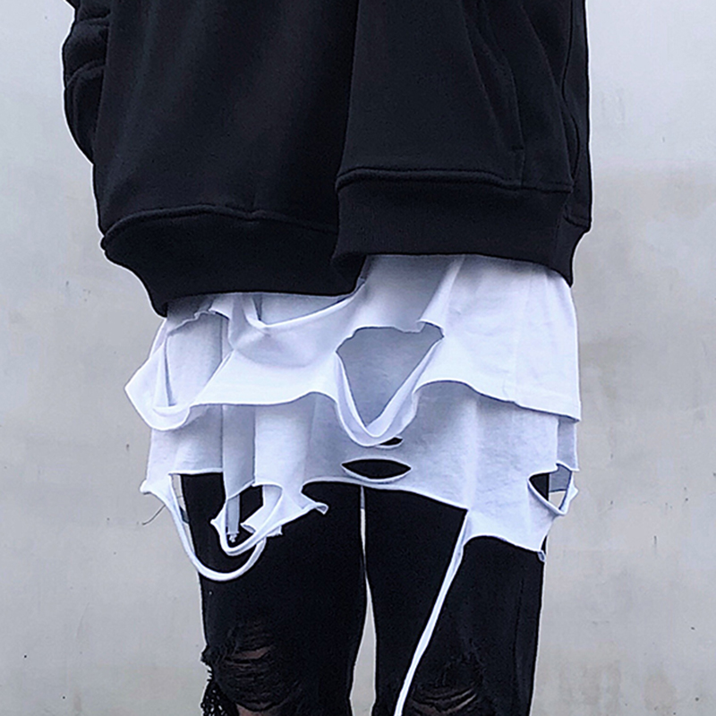 High street butt curtain cut break hole drawing fake two pieces of swing magic plate can be removed apron for men and women