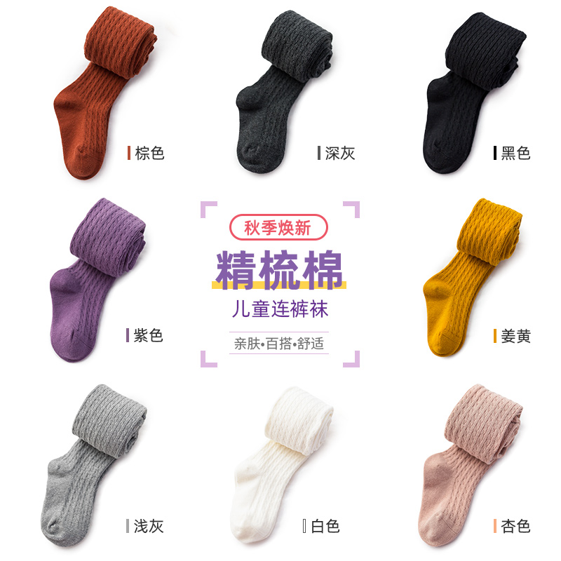 Girls tights spring and autumn thin children's white baby jumpsuit pure cotton medium and thick children with feet in the pants