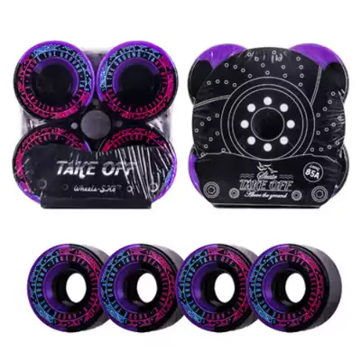 White wheel 80A (partial brush street) Green half black 80A (partial brush Street)Purple half black 80A(partial brush Street) Black wheel 85A (partial action)