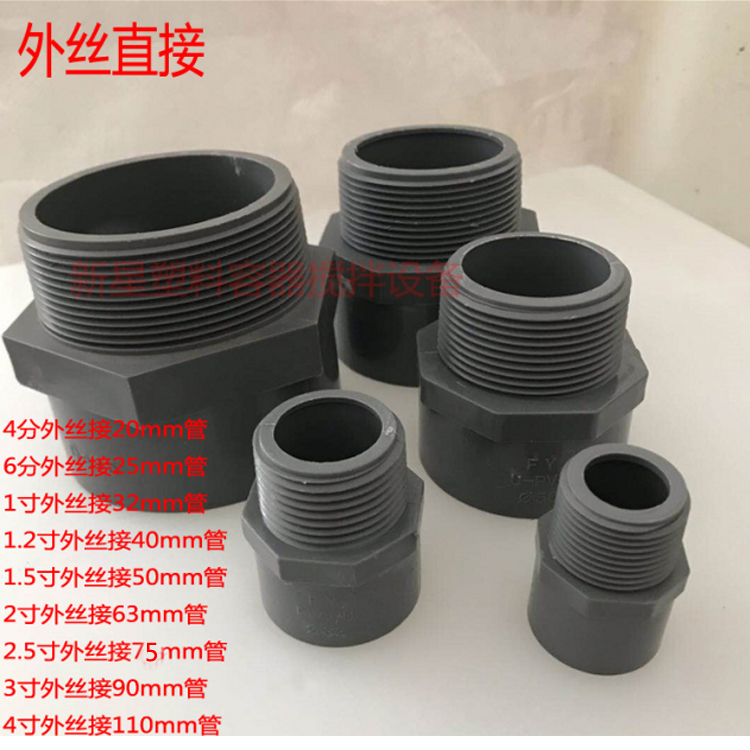 PVC water supply external tooth thread straight through 20 25 32 40 63 water supply pipe fittings external tooth external wire direct head