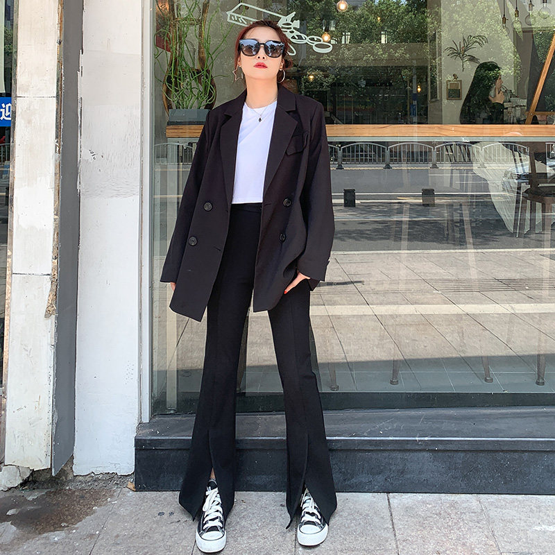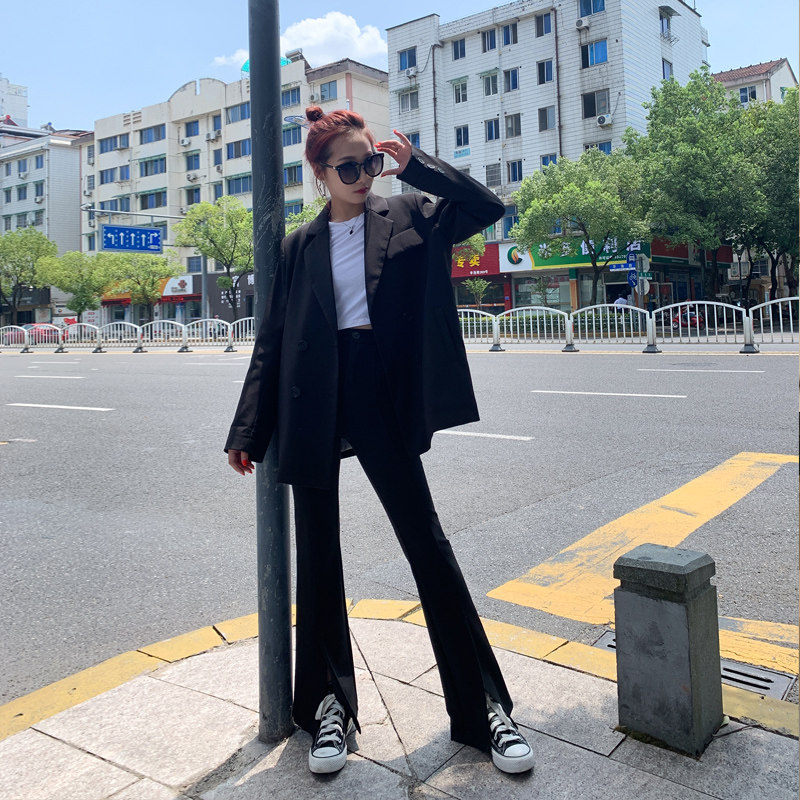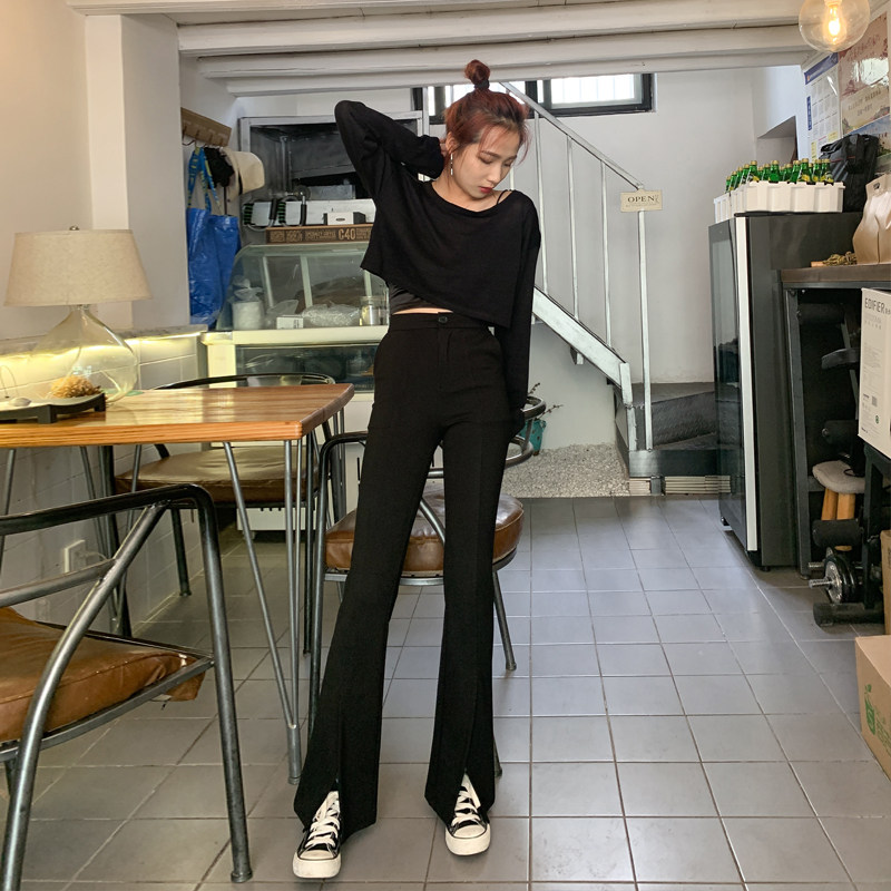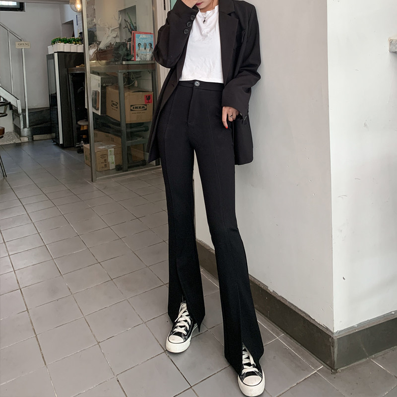 Open microhorn pants high waist pants vertical straight tube slim, casual trousers tide in suit pants autumn