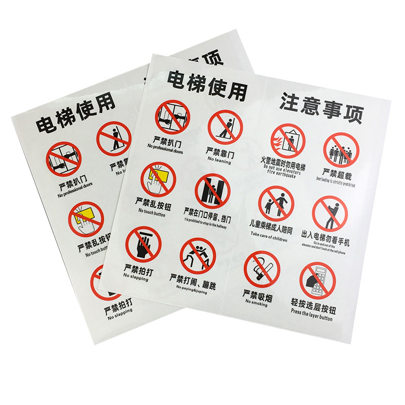 Elevator use precautions marked stickers freight elevator escalator warning self-adhesive label paper elevator safety sign
