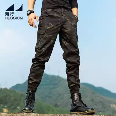 Spring and Autumn Camouflage Bundle Foot Pants Men's Multi-Pocket Waterproof Splash Pants Outdoor Wear-resistant Slim Tactical Pants