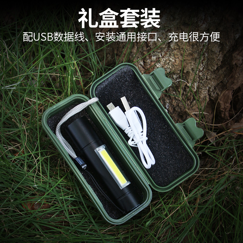 Super bright mini bright light flashlight LED aluminum alloy home rechargeable floodlight portable far outdoor mountaineering