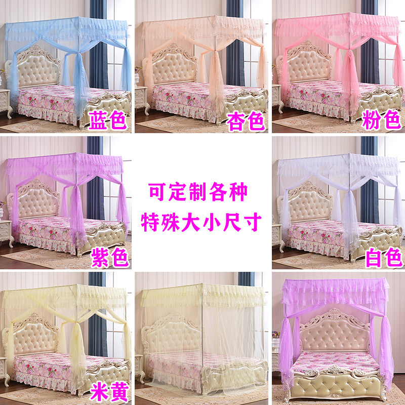 Mosquito net three doors open stainless steel bracket square top floor palace 1 2 1 5 1 1 8m meters double bed for larger bookings-Taobao
