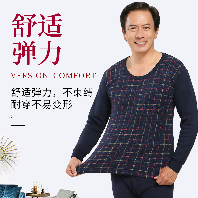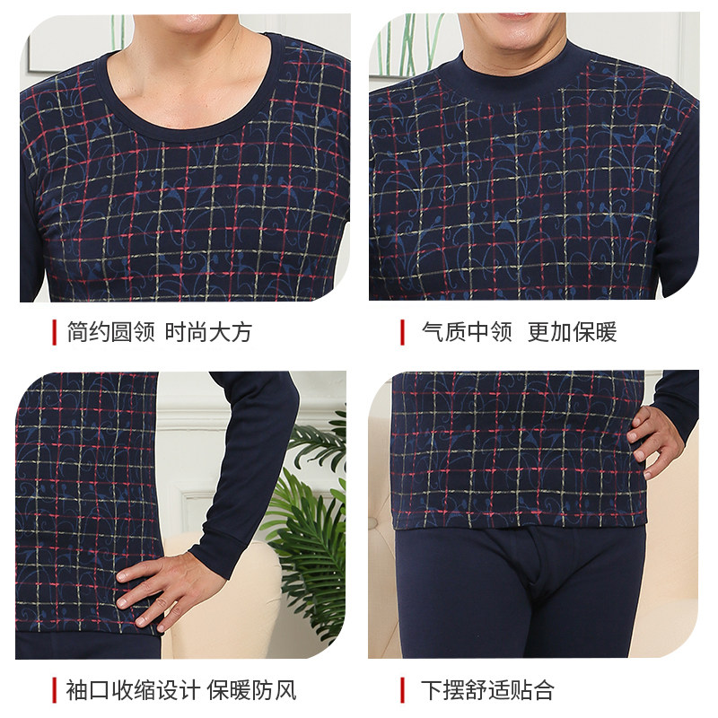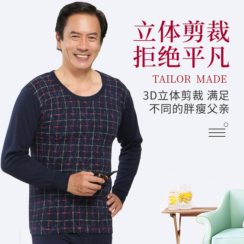 Father's autumn clothes and long johns suit middle-aged men's spring and autumn thin section middle-aged and elderly thermal underwear for the elderly to wear pure cotton linen