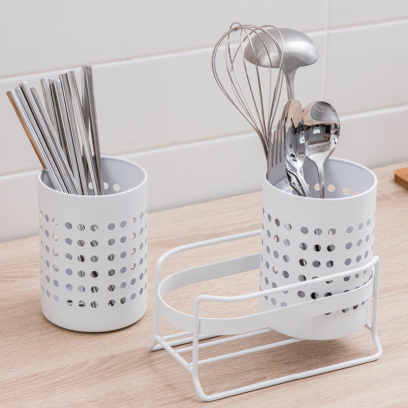 Iron white double-barrel cutlery cage holder Stainless steel double-barrel cutlery cage holder Stainless steel double-barrel cutlery cage holder water tray (knife holder type)Double-barrel cutlery cage holder water tray