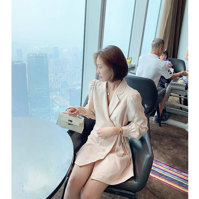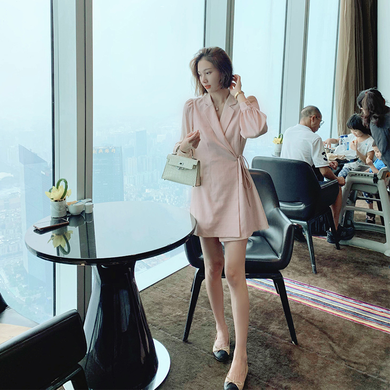 2020 new suits collar dress French style Body Slim Lace Long Sleeve A-word Dress