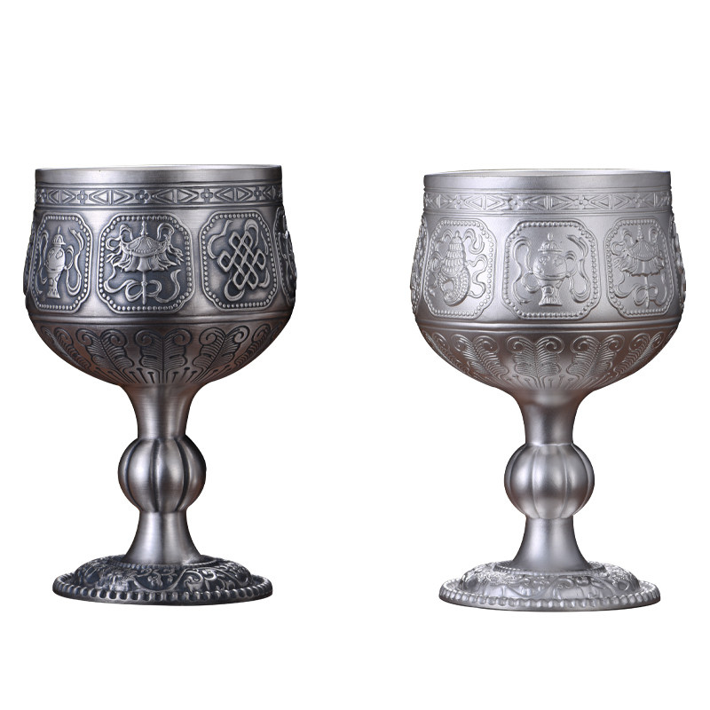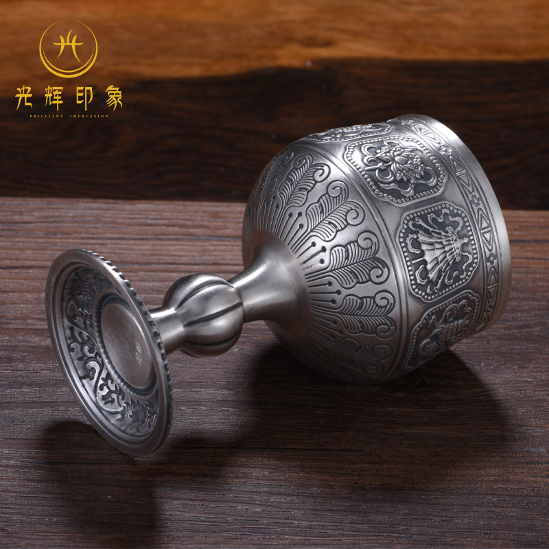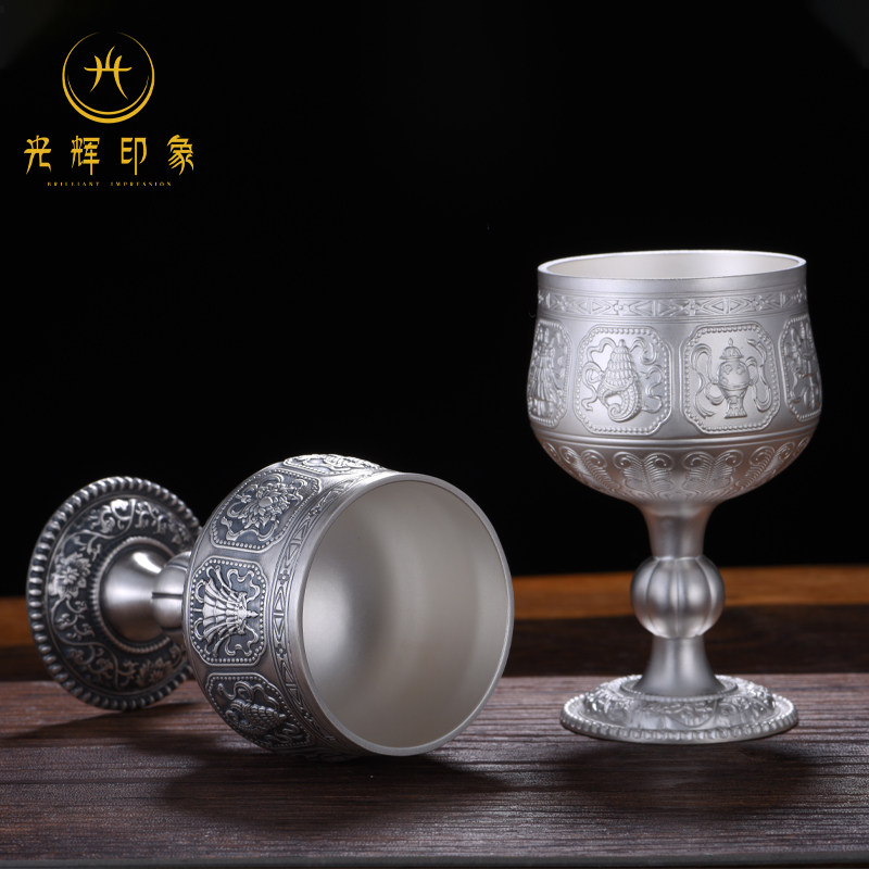 S999 sterling silver eight auspicious pure handmade old retro small wine glass goblet white wine glass sterling silver household antique