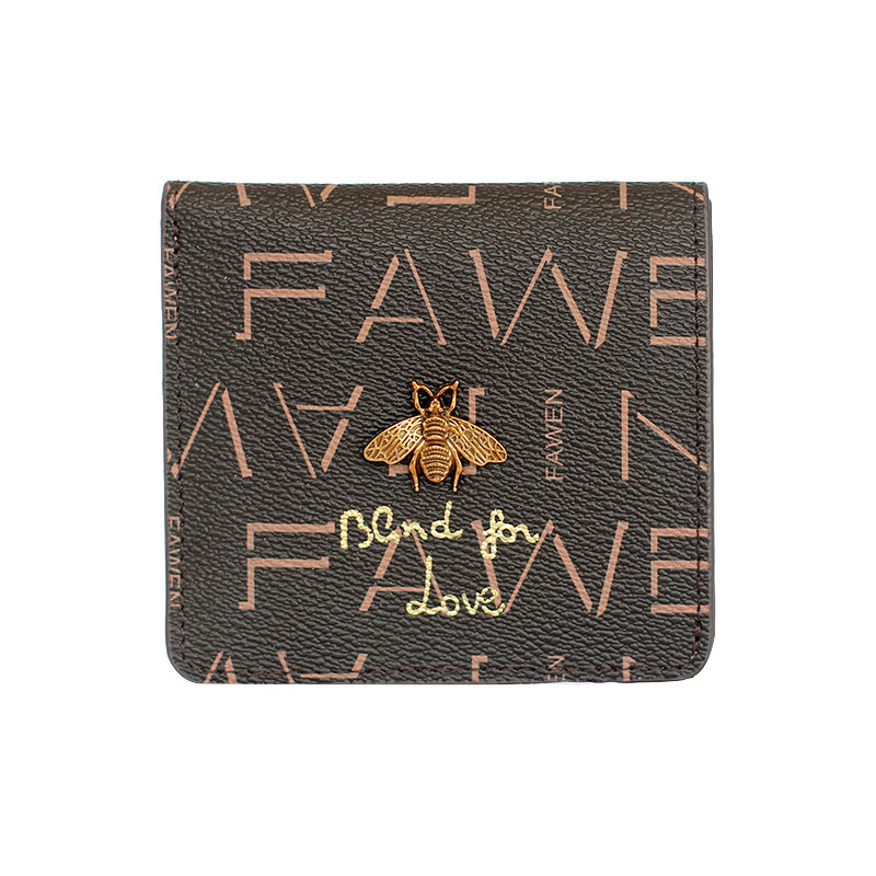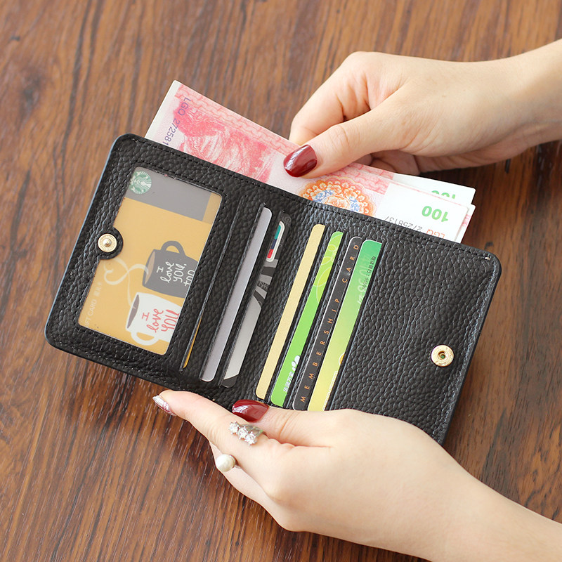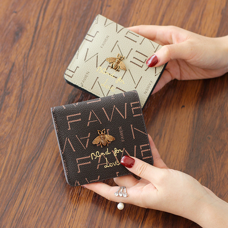 2022 new leather short clip printed big brand two fold cowhide ladies buckle wallet ultra-thin soft leather card bag