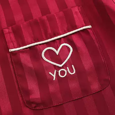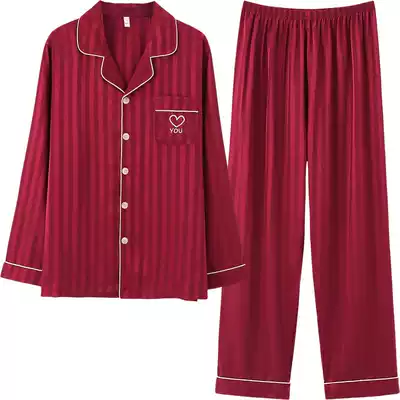 Princess Mark Pajamas Spring and Autumn Men's Ice Silk Long Sleeve Newly Wedding Red Year Cardigan Home Clothes Set