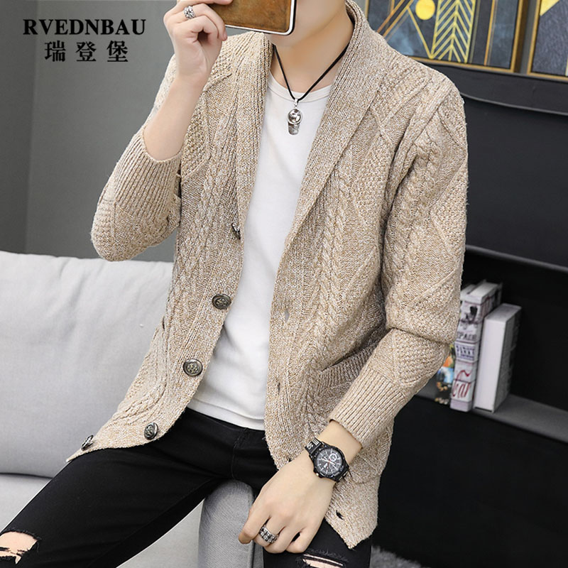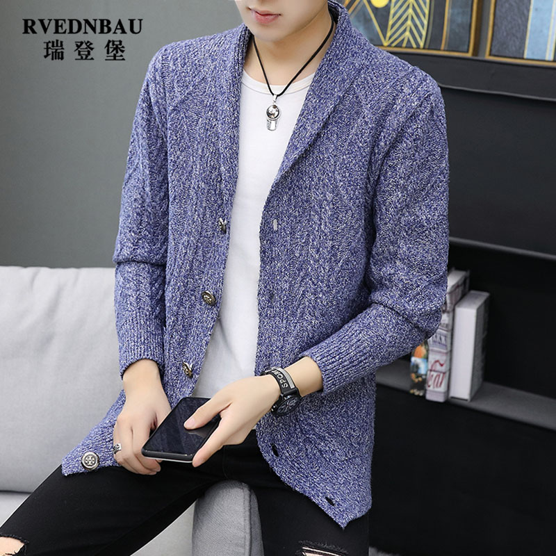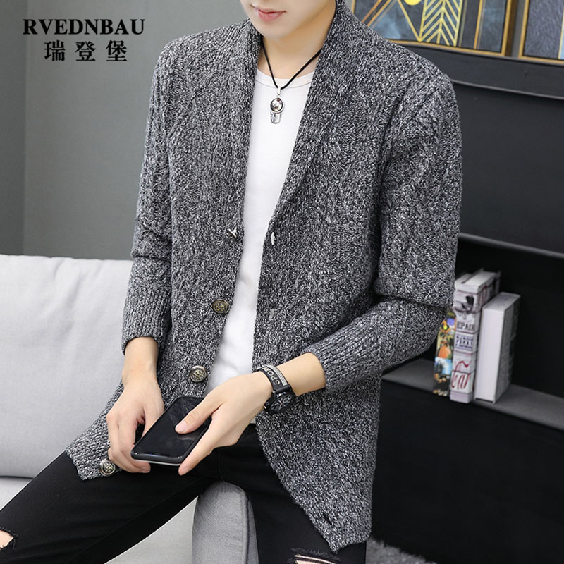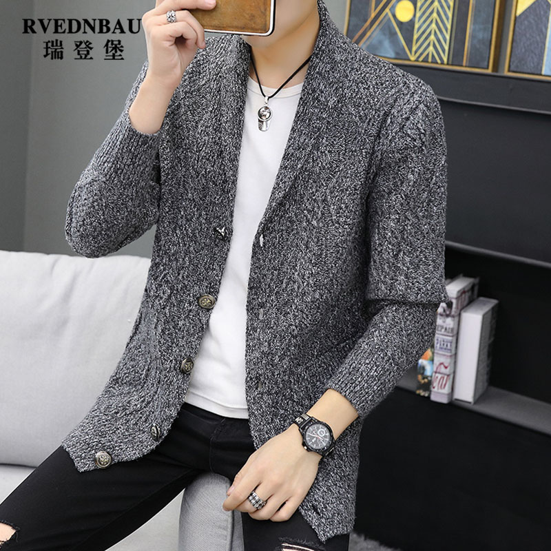 Jacket men's Korean version of the trend knitwear Autumn and winter men's medium and long sweater cardigan youth casual wild coat clothes