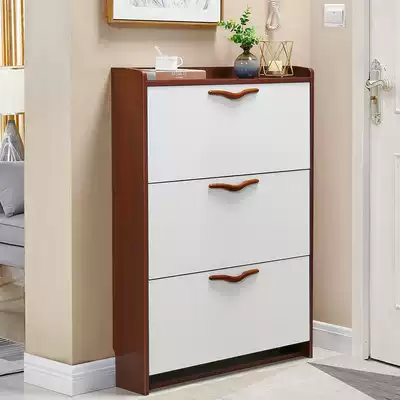 Into the door ultra-thin flip bucket simple modern shoe cabinet home storage 17cm shoe rack black walnut porch cabinet solid wood color