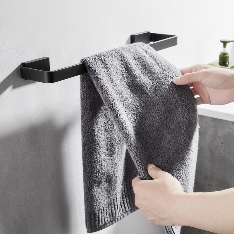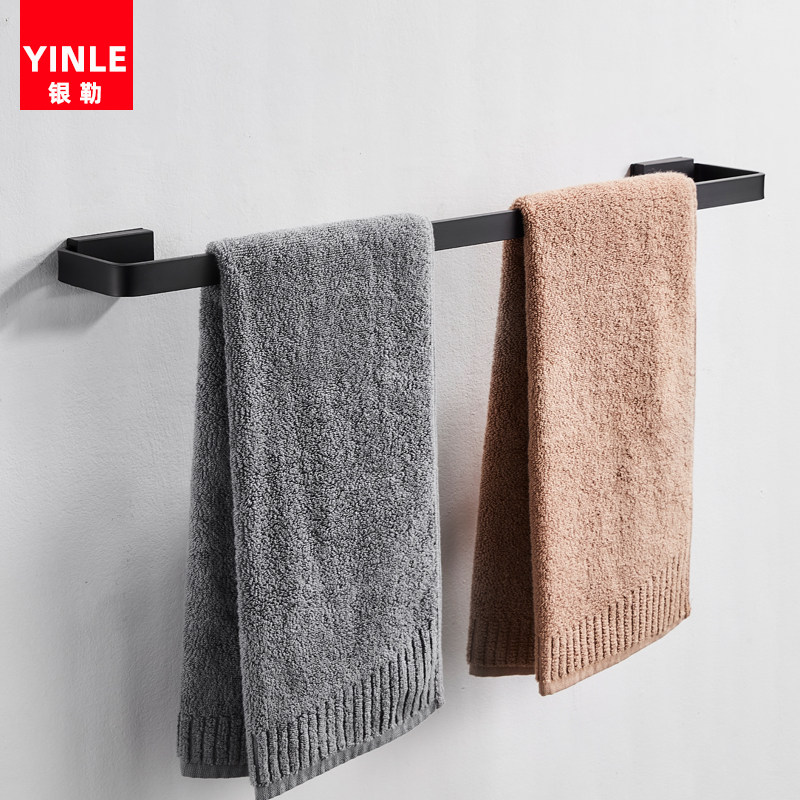 Bathroom black towel bar toilet towel rack single bar non-perforated dressing room hardware pendant Nordic wind