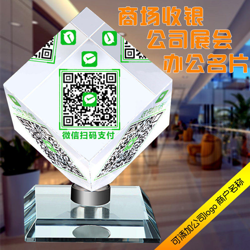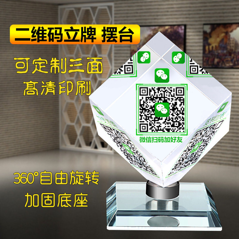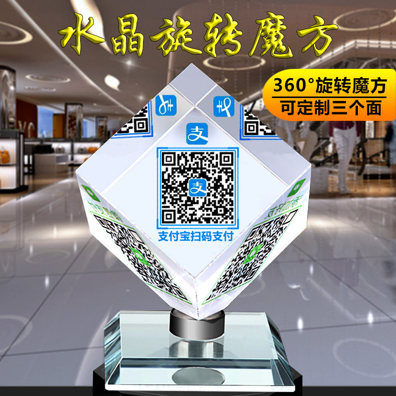 Customize upscale Two-dimensional Code Standout Swing Table Crystal Creative Personality Spin Magic Square Micro letter Alipay collection code collection and payment set to pay card swing table upscale collection of money bar Show card sign