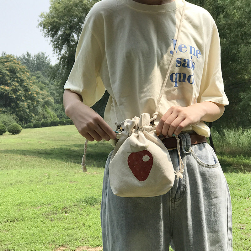 Female students cute 100 hitch mini-canvas bag Xiaoqing New slanted satchel day series Small Number of buckets Bauhausen phone bag