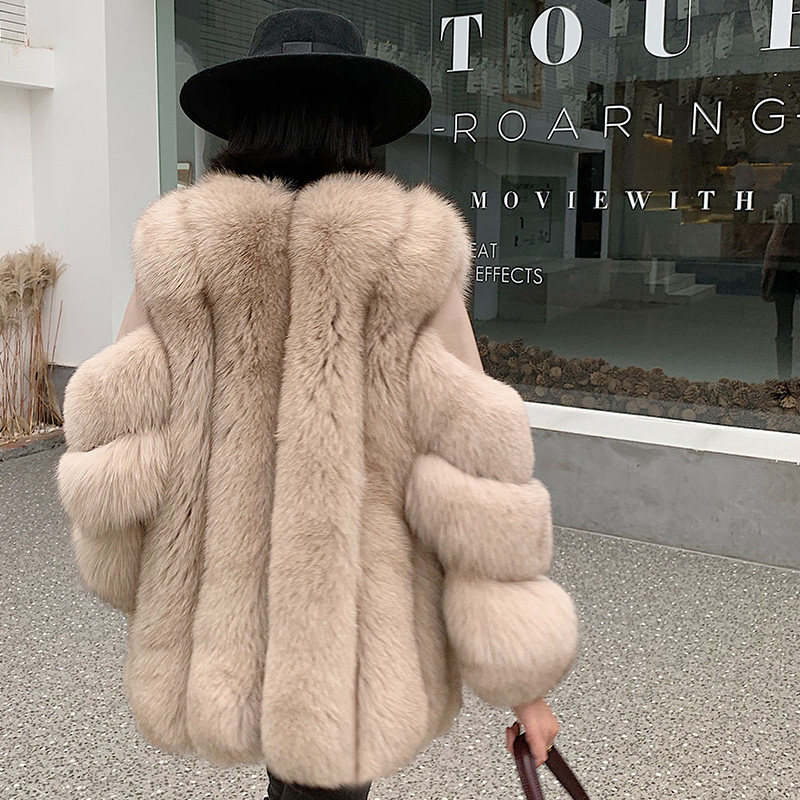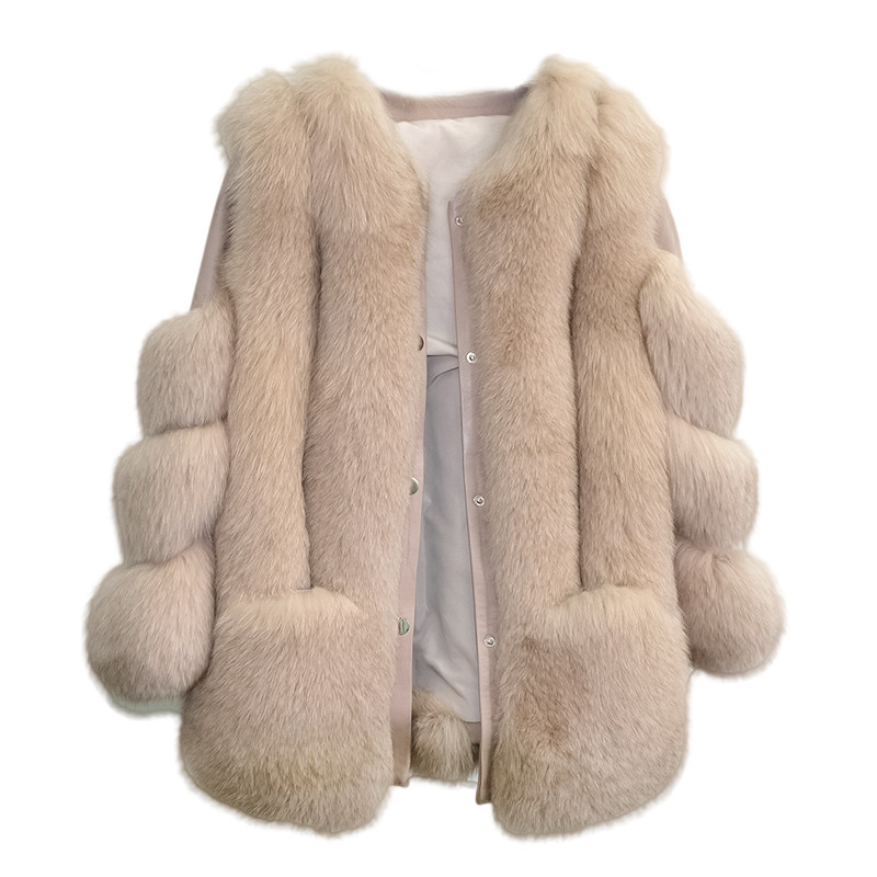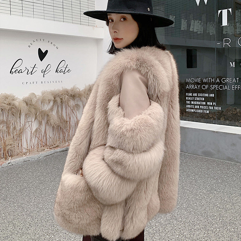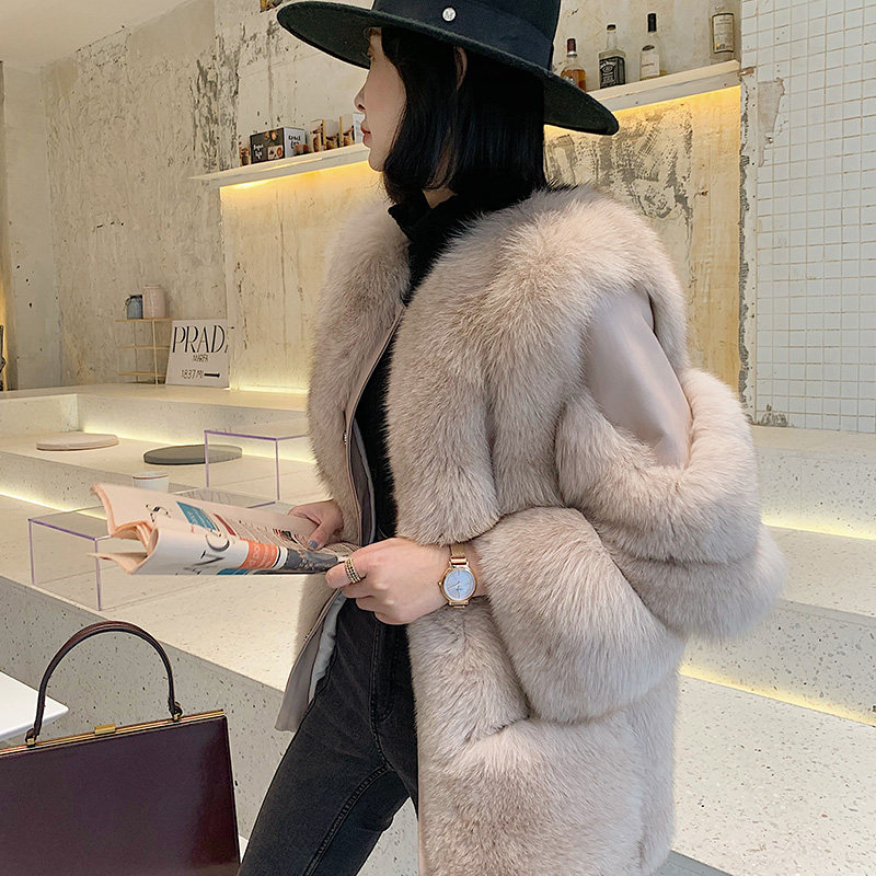 Imported whole leather fox fur coat women's mid-length fur coat warm pockets slimming 2022 winter new