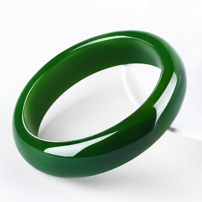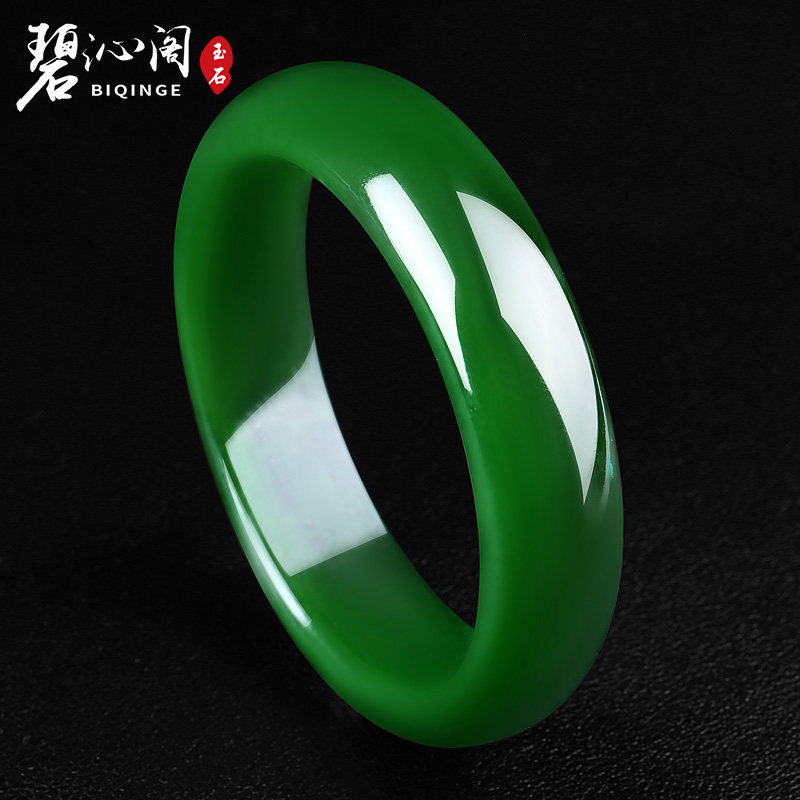 Biqingge natural Hetian jade bracelet Old pit spinach green Jasper bracelet Collection grade jade bracelet women's money to send mom