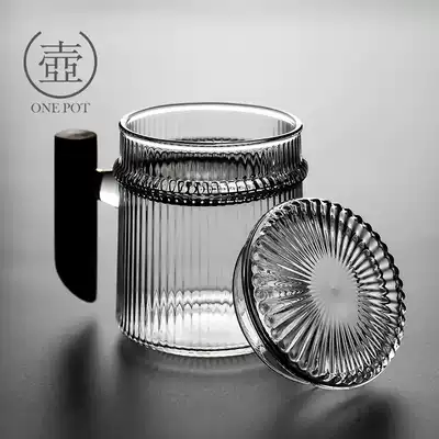 Wooden handle transparent glass Household filter tea cup Heat-resistant flower tea cup Tea water separation cup with lid to put the cup