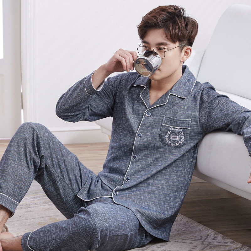 Pure cotton pajamas men's spring and autumn long-sleeved cotton men's summer youth 2021 new large size home clothes winter