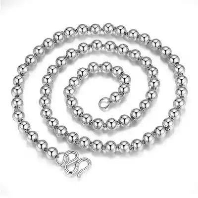 Ball 999 sterling silver necklace for men and women sweater refining Buddha beads refining Korean version of Joker long and short choker couple accessories