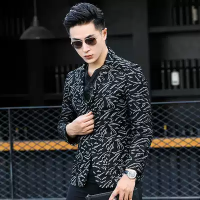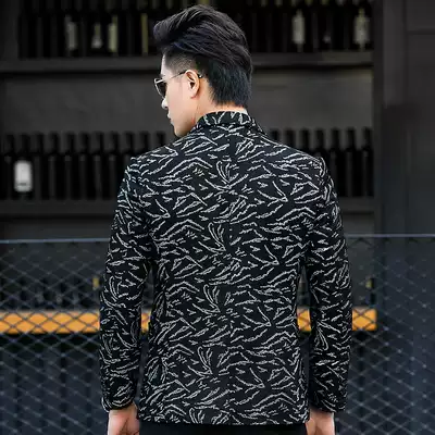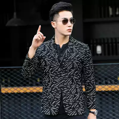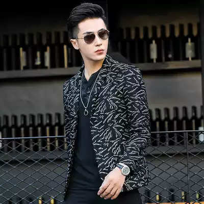 Haining leather leather clothing men's short suit collar sheepskin jacket men's leather suit printed slim trend jacket