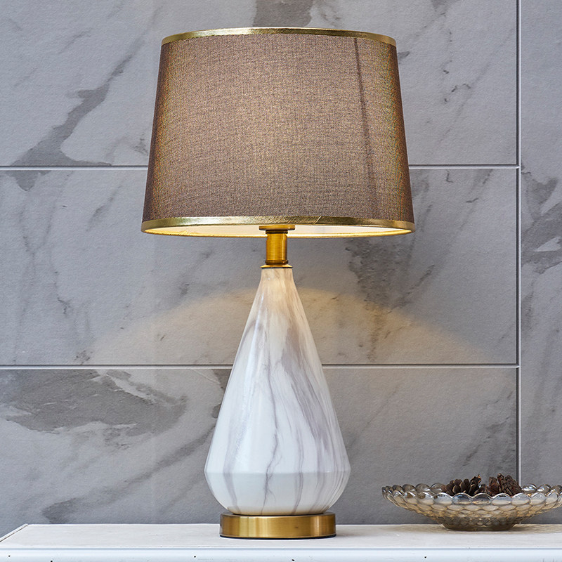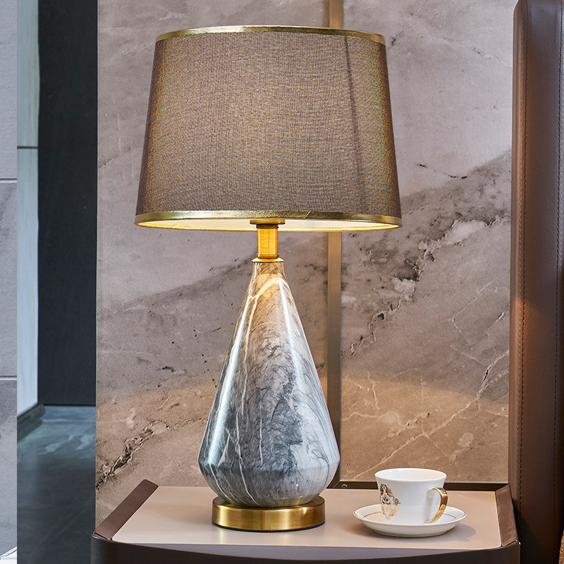 Total copper Nordic minimalist modern bedroom bedside headlights Living room light and luxurious plate room Decorative Book Room Home ceramic table lamp