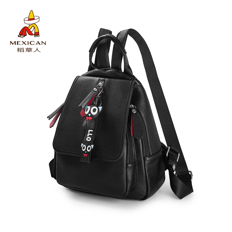 Rice Straw Man Double Shoulder Bag Woman 2021 New Soft Leather Cartoon Pendant Pull Necklace 100 Hitch Casual Little Scapula Wave Computer Bag