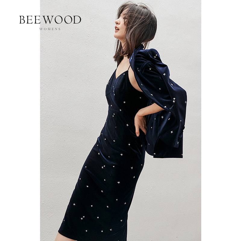 BEEWOOD designer original embroidered nail diamond velvet suspender suit suit two-piece set