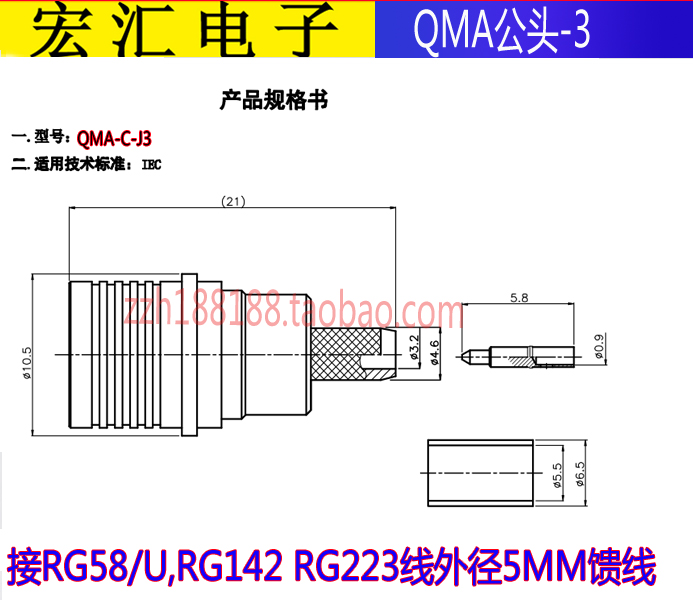 RF Connector QMA Male QMA Female QMA-K-J -- 1 5-3 Matching RG316 RG142 cable