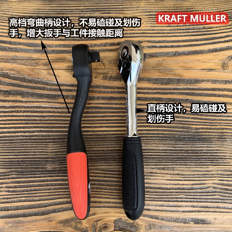Imported 72-tooth all-plastic curved handle ratchet socket wrench quick-release large and medium 1 4-inch socket wrench Germany KRAFTMULLER